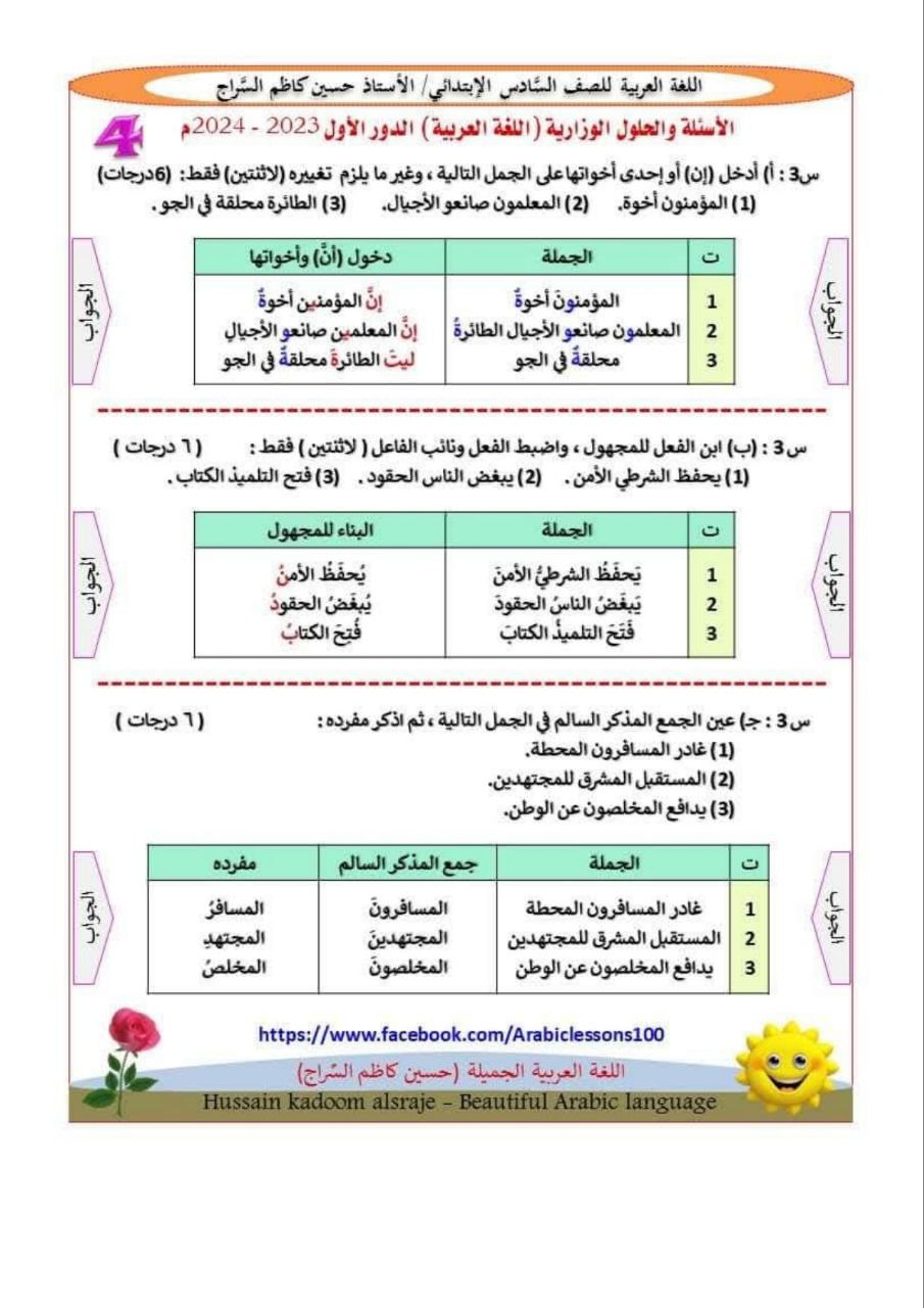 باللغة العربية للسادس الابتدائي.. مع الحلول النموذجية خطوة بخطوة! 📜🔑